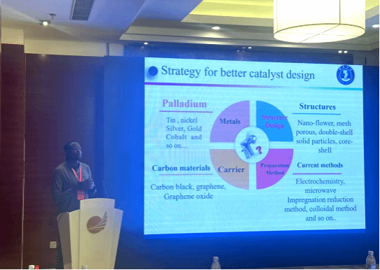 Amir Mahmoud Makin Adam博士在“新型电催化材料与表征”分会场以“Electrocatalysis in Energy Conversion: Bridging Research and Practical Applications”为题作了主旨报告系统阐述了电催化材料设计的最新进展,探讨了如何通过优化催化剂结构提升能源转化效率,并分享了团队在低成本、高效能电催化体系构建中的创新实践。研究生孙睿在“先进储能材料与技术”分会场以“碱性锌锰液流电池电解液添加剂的开发与应用”为题汇报了在锌锰液流电池领域的最新突破通过引入环境友好型电解液添加剂,成功提升了电池的循环稳定性和能量密度,为解决水系电池寿命短、效率低等瓶颈问题提供了新思路。研究生苏安康在“电催化与燃料电池”分会场中以“碱性铝空气电池氧还原催化剂及电解液的优化”为题作了报告详细介绍了通过催化剂活性位点调控和电解液组分优化来提升铝空气电池综合性能的研究思路,其提出的“双功能界面工程”策略为铝空气电池的商业化应用提供了理论支撑。