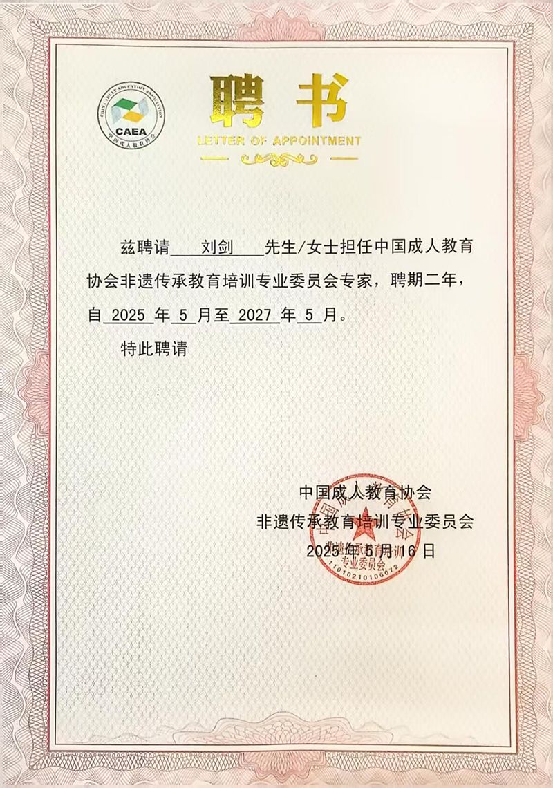 为深入探索非物质文化遗产相关专业建设及非遗传承与创新的可行性路径,加强高等院校、行业和政府主管部门之间的交流合作,5月16至17日,由中国成人教育协会主办,中国成人教育协会非遗传承教育培训专业委员会、北京联合大学北京非物质文化遗产学院联合承办的非遗传承与教育融合高质量发展交流研讨会在北京召开。我校哲学与历史文化学院刘剑副教授参会并受聘为中国成人教育协会非遗传承教育培训专业委员会专家。