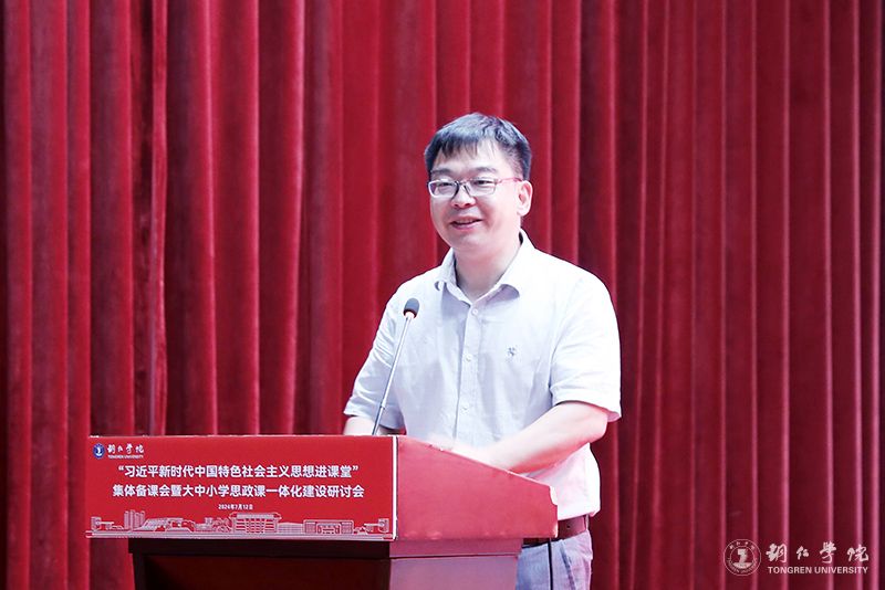 7月12日,在贵州省教育厅思政处的指导下,世界杯官网与西安交通大学马克思主义学院、铜仁市教育局联合举办了“习近平新时代中国特色社会主义思想进课堂”集体备课会暨大中小学思政课一体化建设研讨会。世界杯官网党委副书记、校长朱克乾,贵州省教育厅思政处副处长姜敏,西安交通大学马克思主义学院党委书记苏玉波、院长燕连福,铜仁市教育局二级调研员杨玲,世界杯官网马克思主义学院党委书记张江林等出席会议。世界杯官网副校长唐磊主持会议开幕式。