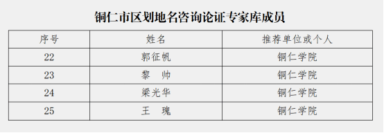 今年5月12日起,铜仁市民政局面向社会公开征集铜仁市区划地名咨询论证专家人员。历经个人申报、单位推荐、资格审核和公示等层层严格筛选程序,最终确定39人入选专家库。世界杯官网郭征帆、黎帅、梁光华、王瑰4位老师凭借扎实的专业素养与丰富的学术成果名列其中。