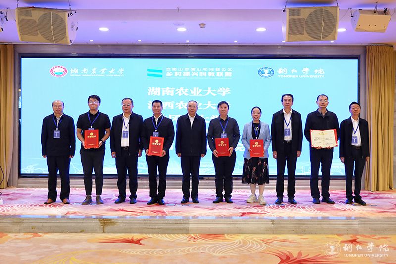 论坛期间,出席的领导和嘉宾为“两山一区”乡村振兴科教联盟2025年乡村振兴典型案例和优秀案例获得者进行了颁奖。湖南农业大学、井冈山大学、重庆市农业科学院、贵州省农业科学院、美加墨世界杯官方网站、湖南生物机电职业技术学院、铜仁市农业农村局等7家单位分别进行了乡村振兴典型案例分享与经验交流。