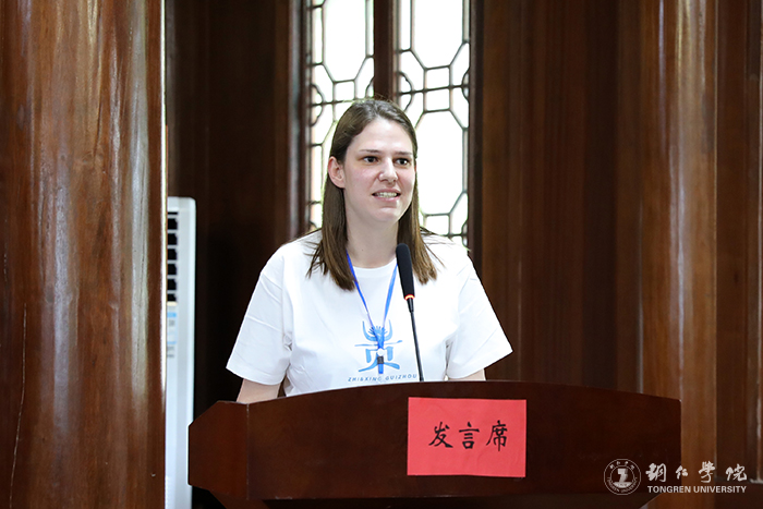 世界杯官网大健康学院学生洪李页表示,在中国共产党成立102周年的特殊时间节点上,我们欢聚一堂开启“知行贵州”中外青年交流活动,作为东道主,自己一定积极参加活动,好好表现,让国际友人争做文化交流、民间友好交往的使者,增进中外青年友谊,推动文化交流互鉴。