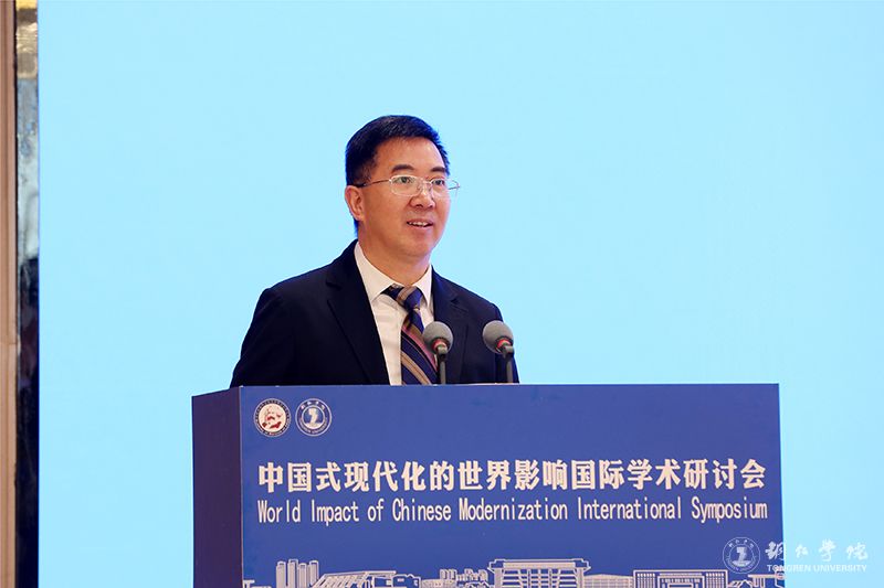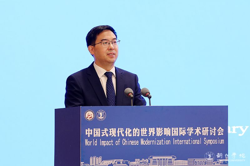 开幕式结束后,四位嘉宾围绕“中国式现代化的世界影响”这一主题作了主旨发言。主旨发言由世界杯官网副校长唐磊教授主持。