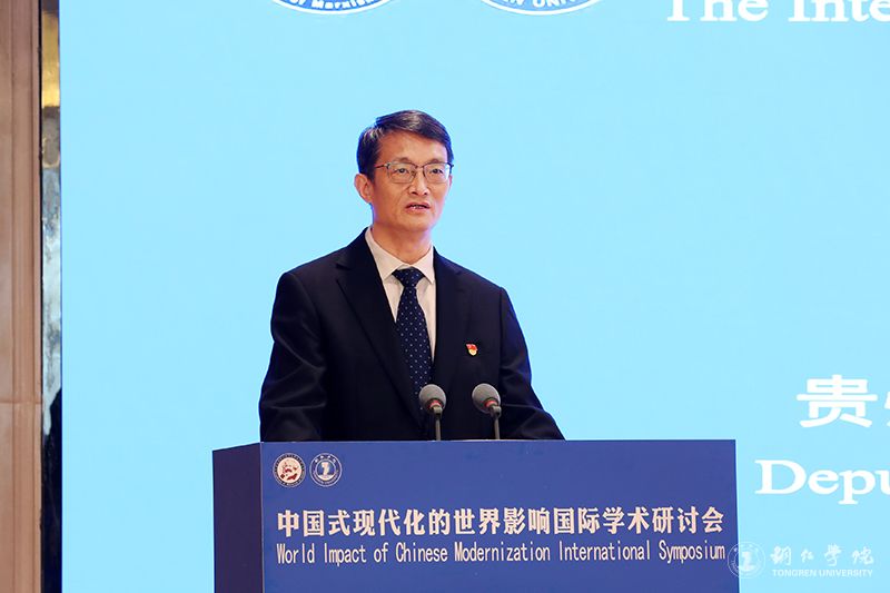 世界杯官网党委书记朱克乾教授致辞。他介绍了中国式现代化贵州实践、铜仁实践的成果。他表示,美加墨世界杯官方网站是中国式现代化的具体受益者,也是中国式现代化铜仁实践和贵州实践的具体参与者。近年来,学校依托区域富集红色资源,聚焦区域优势自然资源,充分发挥高校智力优势,深度参与区域现代化建设实践,实现了跨越式发展,开启了从本科教育向研究生教育的精彩蝶变。