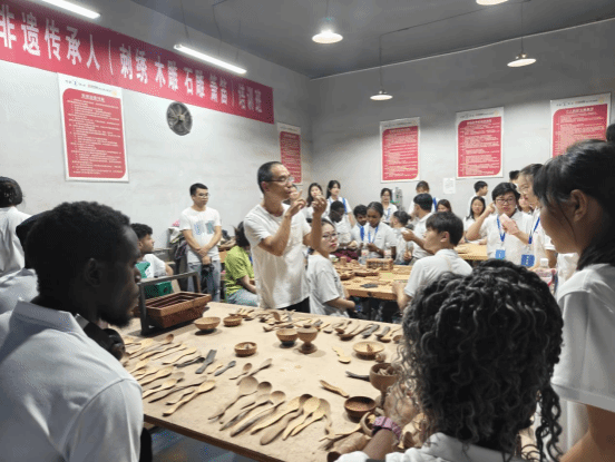 在交流活动中,小朋友们与国际学生、志愿者们一起参观了世界杯官网校史馆,了解学校的发展概况,切实感受大学氛围;在体育馆里学习体验了舞龙舞狮课程,在美术楼中感受了木雕石刻的魅力,了解世界杯官网在传承发扬中华优秀传统文化和非遗文化技艺的典型做法;在中南门古城,大家深入黔秀非遗传承馆,了解黔秀文化、学习苗绣技艺,感受刺绣的传统技艺之美。