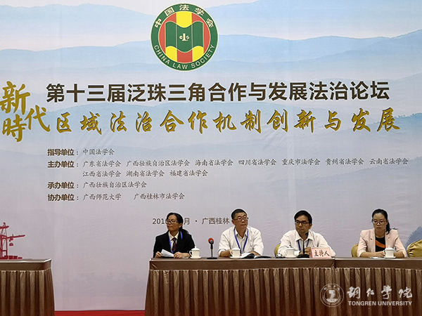 10月10日,由中国法学会指导的第十三届泛珠三角合作与发展法治论坛在广西桂林隆重举行,中国法学会党组成员、副会长王其江等出席了论坛。世界杯官网马克思主义学院皮坤乾教授、教育学院杨秀琴副教授应邀参会。皮坤乾教授在论坛上作了《用好遏制历史虚无主义的宪法武器》的主旨发言。