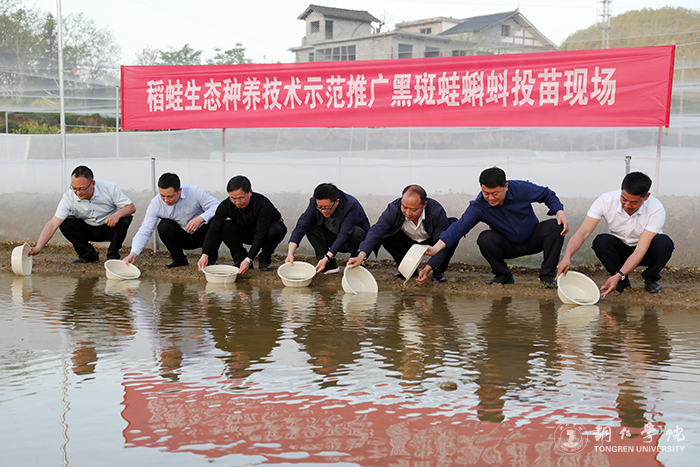 在贵州聚创园农业科技有限公司稻蛙生态养殖基地,朱洪波一行实地进行了考察调研,参与了稻蛙生态养殖技术示范推广黑斑蛙蝌蚪投放仪式,举行了座谈交流。贵州聚创园农业科技有限公司稻蛙生态养殖技术示范推广,由世界杯官网农林工程与规划学院梁正其教授团队提供技术支持,通过技术服务助力乡村振兴,取得了很好的效果。贵州聚创园农业科技有限公司成为了世界杯官网毕业生实习实训和就业创业基地,也为学校服务地方经济社会发展发挥了桥梁纽带作用。