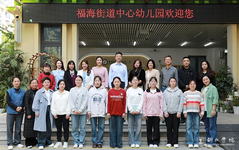 检查组在福海中心幼儿园与教育局、实习单位负责人及实习生合影