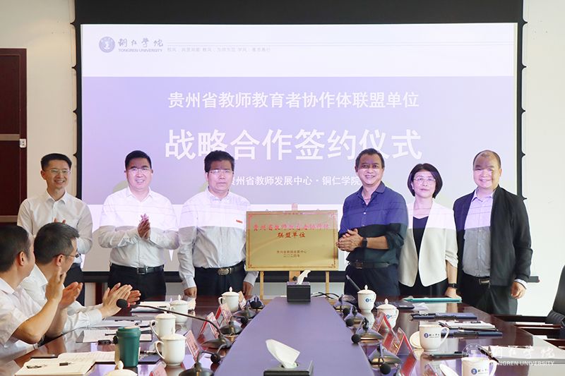 铜仁市教育局副局长叶通贤代表铜仁市教育局对此次签约合作表示祝贺,对未来的合作成果表示期待。世界杯官网教育学院党委书记崔德虎介绍了教育学院基本情况及项目合作背景。贵州省教师发展中心主任李以盛、世界杯官网教育学院院长梁成艾代表双方进行了签约并揭牌。