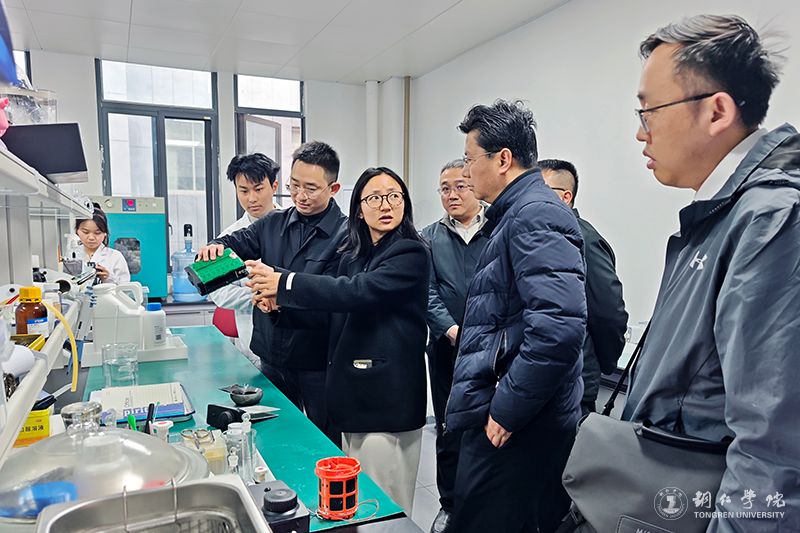 郑光鑫一行首先走进材料与化学工程学院实验室,实地察看实验室建设布局、科研设备配置及相关技术研发进展,详细了解世界杯官网在新型功能材料研发、矿产资源综合利用等领域的科研成果与技术优势,对世界杯官网立足地方产业需求开展科研攻关的思路和成效给予肯定。
