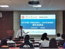 召开的线下宣讲会中,委托兄弟院校相关老师,通过播放经济管理学院农业硕士农村发展领域学位点宣传视频、讲解招生宣传PPT、发放纸质版招生宣传册等环节,向农村发展领域相关专业的考研学生进行了宣讲。
