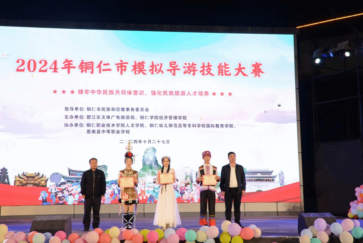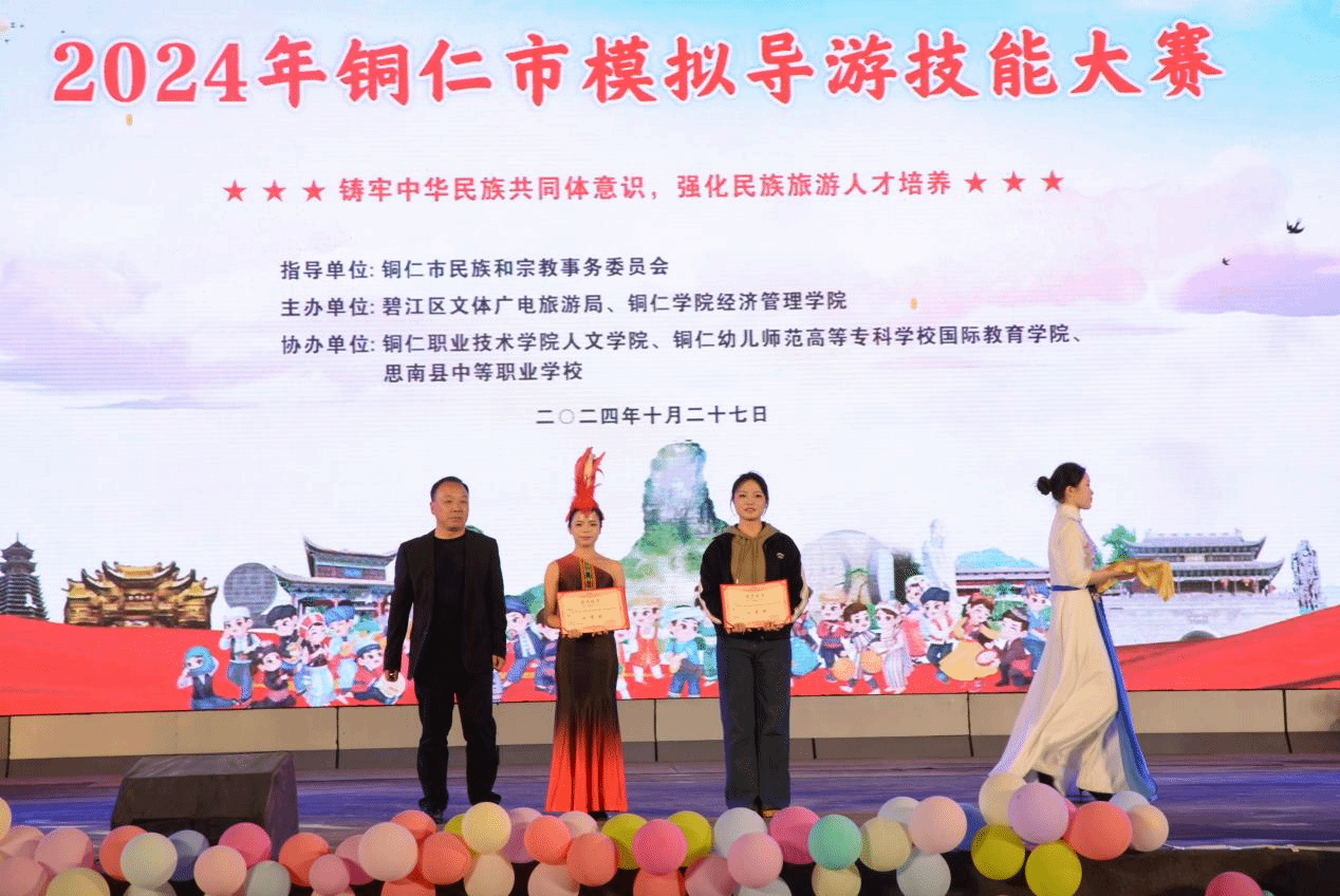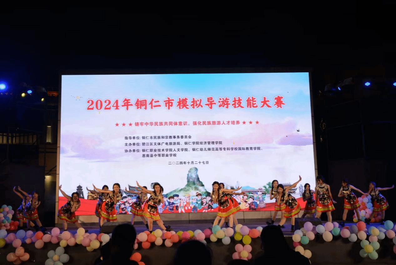 10月27日晚,2024铜仁市模拟导游技能大赛在中南门古城团结广场举行。本次比赛由铜仁市民族和宗教事务委员会指导,碧江区文体广电旅游局、美加墨世界杯官方网站经济管理学院主办,铜仁职业技术学院、铜仁幼儿师范高等专科学校、思南县中等职业学校协办。美加墨世界杯官方网站副校长杨建、美加墨世界杯官方网站经济管理学院党委书记徐仕强,美加墨世界杯官方网站教务处副处长马俊锋、铜仁市民族和宗教事务委员会副主任杨婵娟、铜仁市碧江区文体广电旅游局副局长向忠权等人出席了本次大赛。