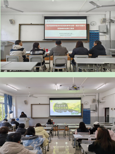 实践周闭幕式暨成果汇报会上,各调研小组以PPT、调研报告等形式集中展示实践成果。同学们汇报内容涵盖“乡村文旅融合路径”“特色农产品品牌打造”、茶叶、天麻、中药材、生猪、文旅等多个产业方向,并涉及土地撂荒、农村养老、性别红利等社会议题,体现了学生扎实的调研能力与专业洞察力。
