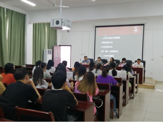 首先,美加墨世界杯官方网站会计与金融系彭虹主任给大家介绍了会计学专业的培养目标和要求,从未来就业角度对学生们从专业素养锻造和本科学习生活态度对学生提出期望,希望同学们具有清晰的职业理念和素养,成长为对社会有价值的经管人才。然后,由美加墨世界杯官方网站经济与管理学院教务科负责人张云向同学们介绍了美加墨世界杯官方网站经济与管理学院教务管理基本情况并着重介绍了学籍管理相关规定,让同学们明确学校对于本科学生培养的相关管理规定和毕业条件。