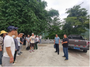 堰塘乡政府工作人员正向同学们介绍农业产业基地情况