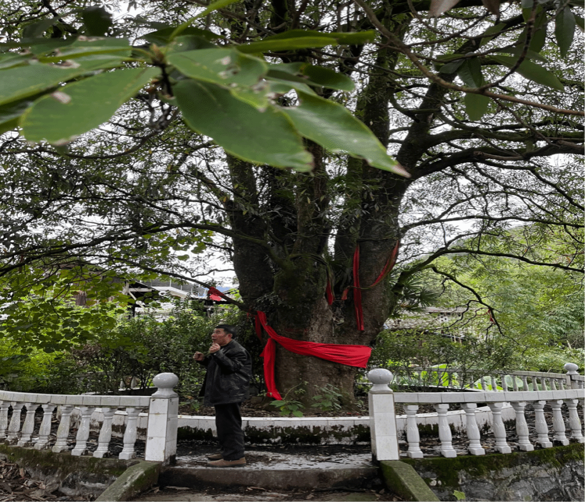一棵历经80多年仍极好的楠木矗立在乡中心庇佑全乡村民,村民亦报之以桃挂上亲切的红绳来表达自己对它的崇高敬意,这棵树不仅是神圣长寿的树,更是楠杆乡村民对美好生活的向往。参观过程中,乡长为大家详细讲解了楠杆乡的历史以及其拥有的意义,使学子们对这段历史有了更加直观和深刻的理解。楠杆乡在习近平总书记的重要思想的指引下,正焕发出新的生机和活力。