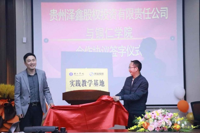 最后,涂总与徐书记一起为实践基地挂牌揭幕。此次活动在全体与会人员合影热烈、圆满地落下帷幕,双方合作共建的序幕则徐徐拉开,未来双方会在金融投资、理财、股权投资、旅游管理、生态旅游、法律、生态恢复与保护等方面展开深度合作,且双方约定会互派专家进行专业培训和指导。通过双方的合作,必然会为铜仁市经济提速、乡村振兴、高教育人作出贡献。