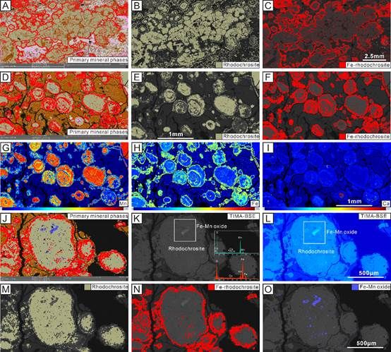 锰(Mn)是一种关键金属和氧化敏感元素,对海洋氧化还原变化极为敏感,在地球化学循环过程中易于发生矿物相转变。在缺氧水体中Mn以溶解态Mn(II)存在,而在氧化水体条件下转化为不溶态Mn(III/IV)。因此,沉积序列中的锰(III/IV)氧化物的存在被认为是评估地球早期氧化历程和局部环境氧化还原波动的关键窗口。人们普遍认为,地质历史时期沉积锰矿床的形成与地球系统的逐渐氧化有关。为此,几乎所有具有经济价值的锰矿都是在大氧化事件(GOE)之后形成的。然而,地质历史时期沉积型锰矿床主要由碳酸锰(II)矿组成,通过锰碳酸盐示踪古海洋氧化还原变化依赖于对其形成机制的精确限制。