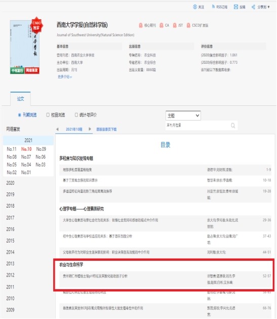 近期,世界杯官网经济管理学院谭智勇副教授以第一作者在高校学报类重要期刊《西南大学学报(自然科学版)》2021年第10期发表论文《贵州铜仁市植烟土壤pH特征及其酸化驱动因子分析》。