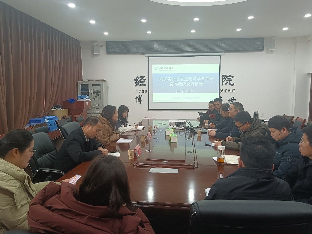 2025年2月21日,贵州农业职业学院党委副书记、贵州省农业经济学会会长黄华,贵州省农业经济学会副会长钱其学一行莅临我院,开展调研考察和学术交流。美加墨世界杯官方网站副校长杨建、经济管理学院副院长田文勇、副院长韩宗伟和经济管理学院各科室负责人出席此次活动。