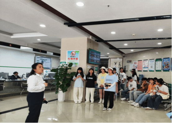 活动开始,同学们首先来到铜仁农商银行,深入了解铜仁农商银行的工作岗位、内容、环境及助农相关知识。铜仁农商银行坚持“深耕本土,支农支小”市场定位,围绕“方便、灵活、快捷”的经营理念,致力于建设“有温度、有速度、有深度”的百姓银行,持续发挥和巩固农村金融主力军、地方金融排头兵、普惠金融引领者作用和地位,不断提升金融服务的覆盖率、可得性和满意度。
