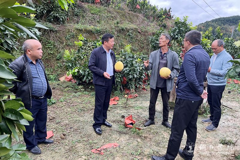 在德江县共和镇茶坨村,吴先佳和村支两委干部围绕乡村产业振兴、集体经济发展等进行了交流,看望慰问了学校驻村干部袁记平,实地考察了茶坨村柚子产业基地。他指出,乡村振兴,关键在人、关键在干,要发挥好村支两委干部的能力优势,当好乡村振兴“领头雁”和产业振兴的“带头人”;驻村干部是做好巩固拓展脱贫攻坚成果同乡村振兴有效衔接工作的关键支持和重要保障,要发挥好党性强、懂政策、知识广的优势,主动作为,加强与村支两委干部沟通协作,形成合力,高质量推动乡村产业发展;实现乡村振兴,产业兴旺是关键,要聚焦乡村振兴核心要素,培育壮大传统产业,推动乡村特色产业发展,提升乡村经济活力和农民收入水平。