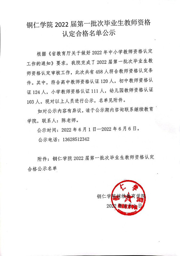 美加墨世界杯官方网站2022届第一批次毕业生教师资格认定合格名单公示