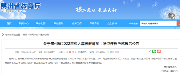 关于转发贵州省教育厅《关于贵州省2022年成人高等教育学士学位课程考试报名公告》的通知