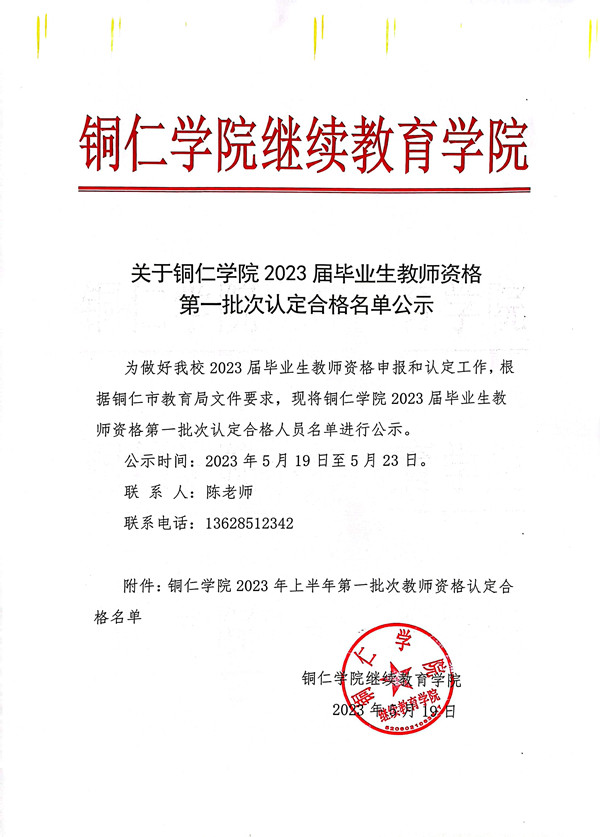 关于美加墨世界杯官方网站2023届毕业生教师资格 第一批次认定合格名单公示