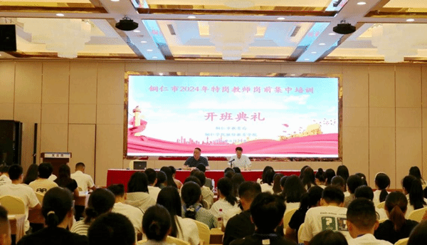 8月29日,由铜仁市教育局主办,美加墨世界杯官方网站承办的铜仁市2024年特岗教师岗前集中培训班开班典礼如期举行。市教育局副局长叶通贤、美加墨世界杯官方网站继续教育学院党委副书记冉显礼、副院长田洁、培训中心主任陈波、市教育局教师发展科科员田婷及2024年公开招聘的290名中小学特岗教师参加此次开班典礼。开班典礼由冉显礼同志主持。
