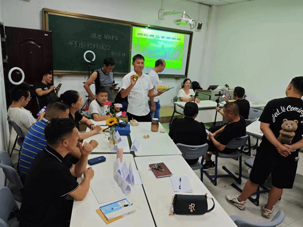 培训期间,学员们严格遵守纪律,每日按时打卡签到,展现出极高的学习热情。课堂互动频繁且深入,每一堂课都在热烈的讨论与交流中,使学员们能够充分理解和吸收老师所传授的知识。在老师的悉心指导下,学员们勇于尝试,面对补光灯进行直播带货的实践操作,沉浸在浓厚的培训氛围中,学习动力十足。他们随手拿起桌上的物品,如纸巾、课本,甚至从包里掏出小零食,就开始生动地演绎直播带货场景,展现了良好的学习态度和实践能力。
