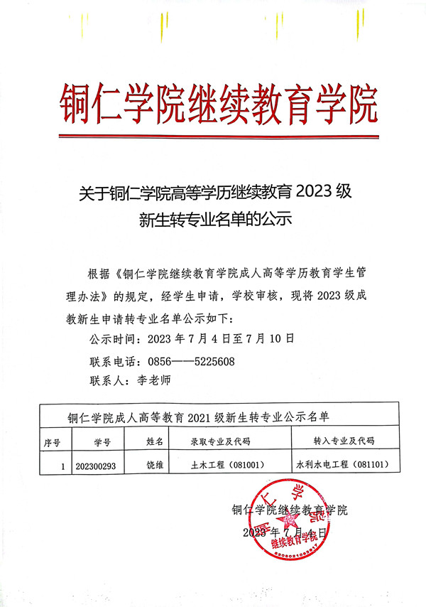 关于美加墨世界杯官方网站高等学历继续教育2023级新生转专业名单的公示