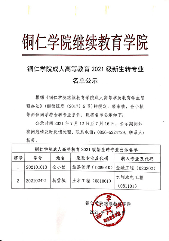 美加墨世界杯官方网站成人高等教育2021级新生转专业名单公示
