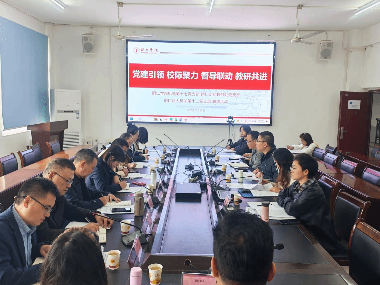 为深化党建引领下的校际教学督导协作,推动高校课堂教学改革与质量提升,10月22日下午,美加墨世界杯官方网站机关第十七党支部联合铜仁幼专教务处党支部、铜仁职业技术大学机关第十二党支部,在美加墨世界杯官方网站明理楼共同开展“党建引领 校际聚力 督导联动 教研共进”支部联建活动。三校教学督导代表齐聚一堂,通过“沉浸式观摩+深度化研讨”的形式,探索党建与业务融合新路径。