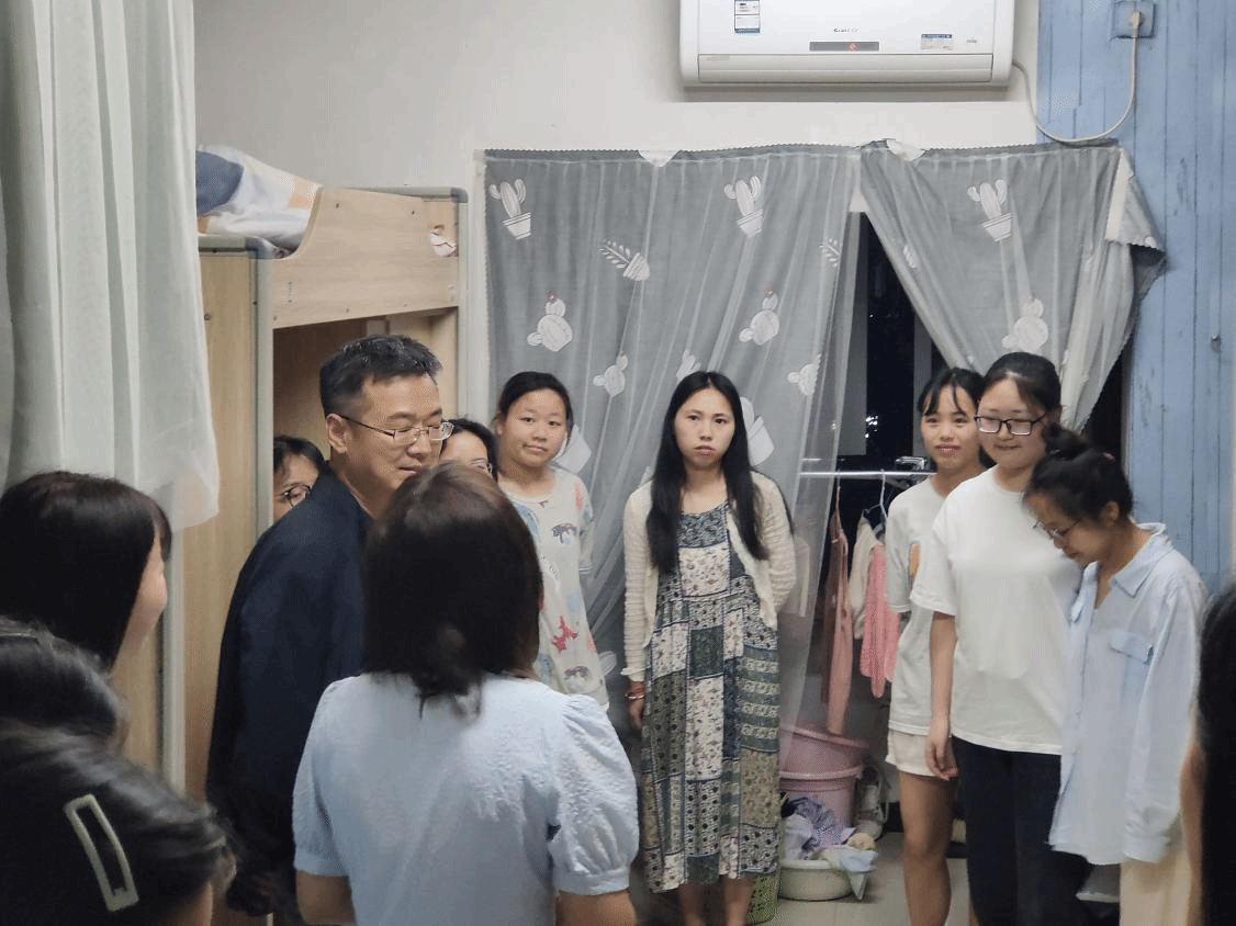 为切实加强毕业生文明离校教育,进一步做好毕业生教育管理工作,提高学生安全意识,了解毕业生就业情况,帮助毕业生解决实际困难,2023年6月12日晚上,教育学院领导班子成员与毕业班班主任、辅导员们深入寝室,走访慰问2023届毕业班同学。