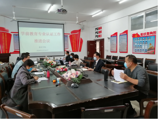 3月26日,我院在院三楼会议室召开了学前教育师范专业二级认证工作推进会议。校教学质量监控与评估中心张杰主任、艺术学院院长李洁教授、教务处冉耀宗副处长到会指导,会议由我院副院长(主持工作)白强主持,院领导班子成员、相关科室负责人出席。