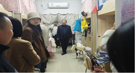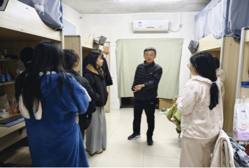 在走访过程中,院领导一行先后走进多间本科生宿舍,与同学们亲切交谈。“家是哪里的?”“最近学习情况怎样?”“冬天冷不冷?”“生活上有什么困难?”崔德虎书记细致询问同学们的生活起居、学业进展和期末备考情况,叮嘱大家一定要注意防寒保暖,劳逸结合,以饱满的精神状态迎接各项学习任务。