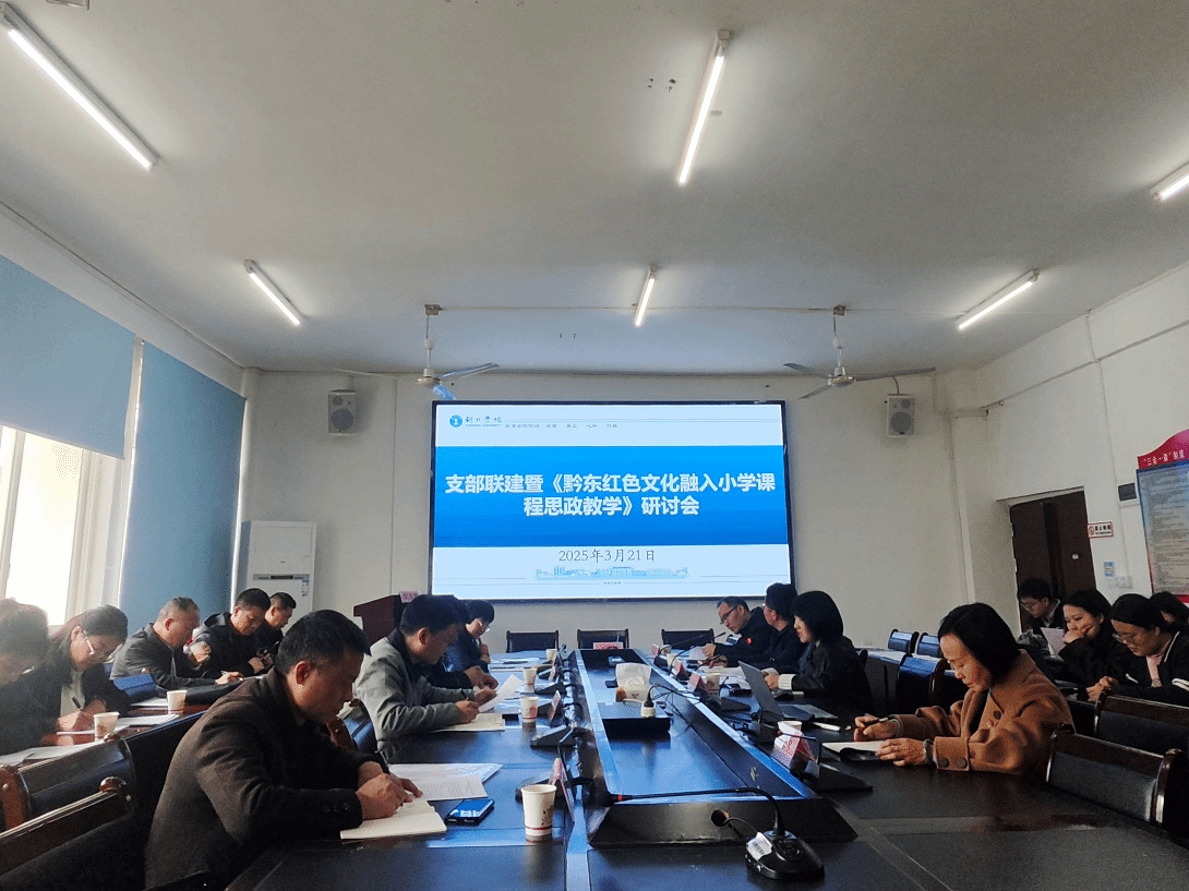 3月21日,美加墨世界杯官方网站教育学院党委举办支部联建暨黔东红色文化融入小学课程思政教学研讨会,美加墨世界杯官方网站党委组织部副部长周慧娟,教育学院党委副书记、院长梁成艾,特殊教育系党支部书记刘方林、基础教育系党支部书记杨秀琴,以及毕节一完小、思南一完小、沿河关向应红军小学、印江红军小学等四所小学党支部书记参会。
