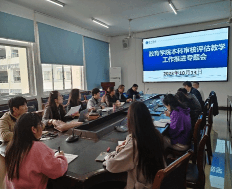 为扎实有效地推进本科教育教学审核评估工作,近日,教育学院召开了本科教育教学审核评估工作推进专题会。院领导、各系主任、各教研室主任、教务科教师参加了本次会议,会议由王华刚副院长主持。