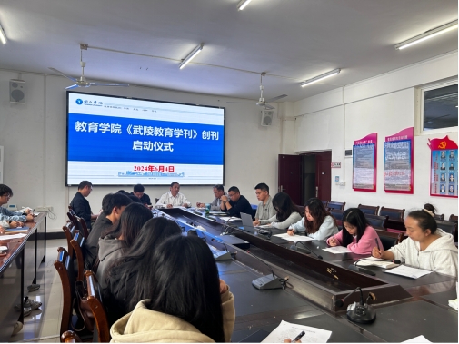 2024年6月4日下午,教育学院《武陵教育学刊》创刊启动仪式在明理楼B三楼会议室举行。院领导班子成员,团总支负责人,学刊指导老师、编委成员及各班班长等参加启动仪式。教育学院副院长董世华主持启动仪式。