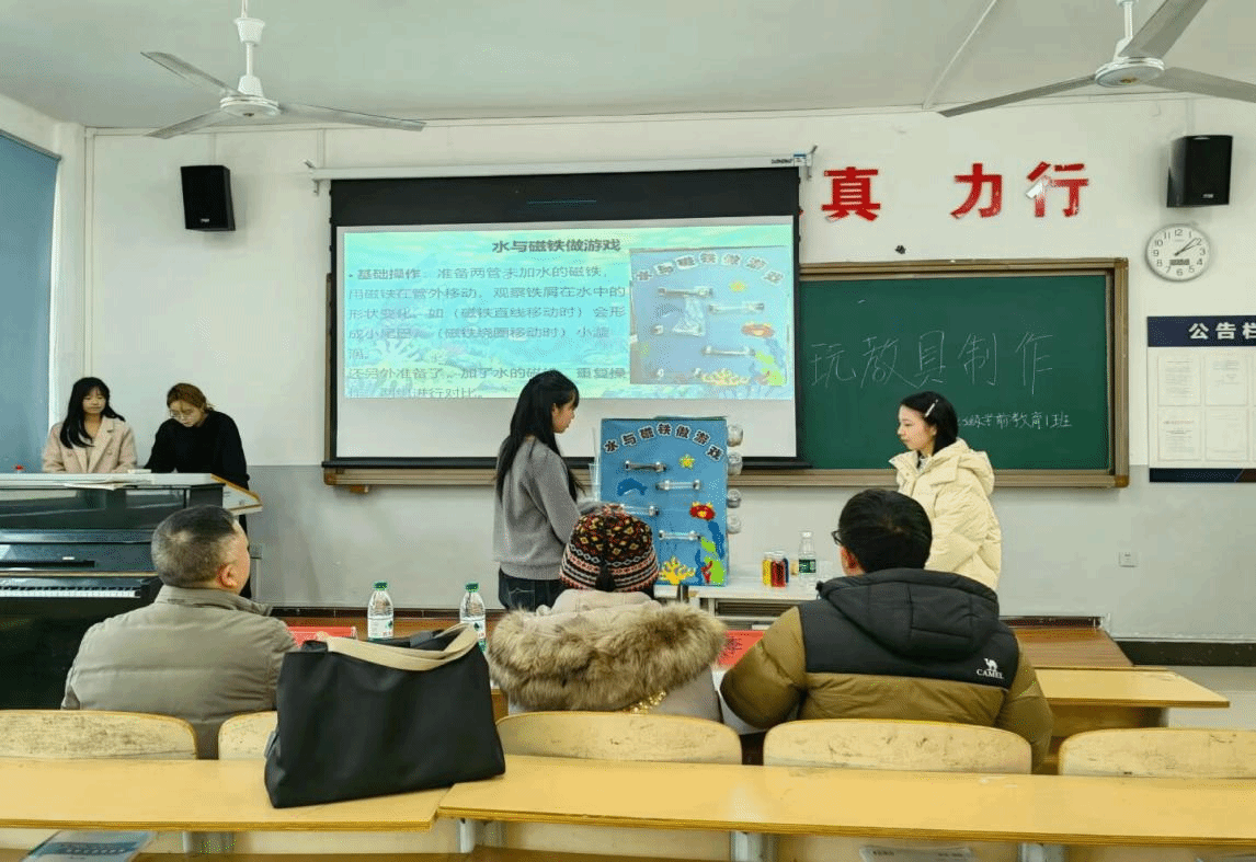 验收现场秩序井然,同学们精神饱满、自信从容,充分展现出扎实的专业功底与良好的职业风貌。在玩教具制作区,同学们围绕科学探索、语言认知、益智游戏等主题,创作出形式多样、设计精巧的作品,兼顾环保性、趣味性与教育性;简笔画考核中,大家以流畅线条与鲜明色彩,快速勾勒出生动活泼、充满童趣的幼儿常见形象;在儿歌自弹自唱环节,琴声与歌声和谐相融,同学们准确把控节奏,深情演绎经典儿歌;在舞蹈展示现场,同学们身着统一服装,随着欢快旋律翩翩起舞,民族舞、现代舞、儿童舞等多种风格尽显优美舞姿与肢体表现力;在语言技环节,考核涵盖幼儿故事讲述、儿童剧表演及朗诵等内容,同学们通过生动的语言、丰富的表情和恰当的肢体动作,将经典童话、绘本故事等内容演绎得引人入胜,展现出优秀的语言感染力与情境创设能力。活动结束后,评委组根据学生现场表现评定奖项,并颁发荣誉证书。