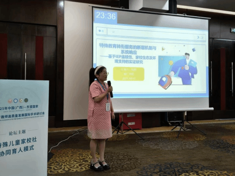 本次论坛以特殊教育教师专业发展的区域性挑战与突破路径;AI赋能科技助残:特殊儿童健康融合发展路径为主题,由主旨报告、平行论坛组成,共同特殊儿童教育发展新趋势、新路径、新机遇,促进跨界合作,助力特殊儿童教育健康建设。世界杯官网教育学院特殊教育专业陆艳博士、宋健博士受邀参加本次研讨会。陆艳博士在平行论坛(一)中作了《特殊教育转衔服务的断层机制与系统相应--基于IEP连续性、家校生态及环境支持的实证研究》主题报告,宋健博士在平行论坛(五)中作了《韩国特殊儿童职业技能教育的实践与剖析》主题报告。