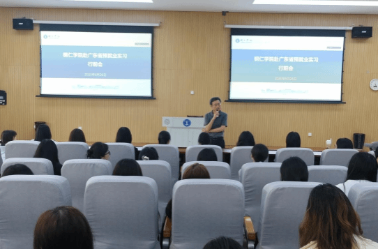 近日,学前教育专业在博思楼105召开了2026届毕业生教育实习动员大会。教务处相关负责人,铜仁传媒集团相关人员,教育学院分管教学副院长王华刚、专业负责人杨瑛、实习带队老师及全体2026届学前教育专业毕业生共同参与了此会。动员大会分两个阶段进行,第一阶段为学前教育专业全体实习生参与,第二阶段为广东预就业实习学生参与。