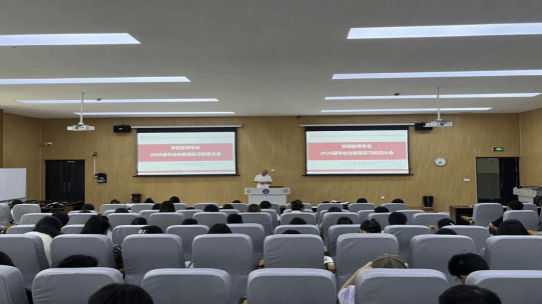 大会第二阶段主要由教务处李书锟老师主持,王华刚副院长为同学们送上了殷切的实习寄语。他鼓励同学们珍惜这次实习机会,将所学知识运用到实践中,在实践中不断提升自己的专业能力和综合素质,同时要保持积极乐观的心态,勇敢面对实习过程中可能遇到的困难和挑战。大会还通过网络连线的方式,邀请到接收教育实习的相关集团负责人张华老师。她详细介绍了集团的发展历程、业务范围和整体规模,展示了各园的特色和优势,并对教师福利进行了全面介绍,让同学们对未来的实习单位有了更直观的了解。铜仁传媒集团相关负责人也在会上对实习生集体出行要注意的事项进行了细致的强调,以确保同学们能够安全、顺利地抵达实习地点。