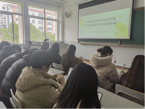 为提高特殊教育专业学生专业技能,根据《教育学院特殊教育专业实践教学周方案》《2024—2025学年第一学期特殊教育专业技能达标验收方案》要求,特殊教育专业于2024年12月17日-19日在明理楼B4305、410和301教室进行2024年度特殊教育专业技能验收,此次验收项目包括IEP撰写、国家通用盲文和国家通用手语三项专业技能,验收对象为2022级特殊教育专业全体学生。