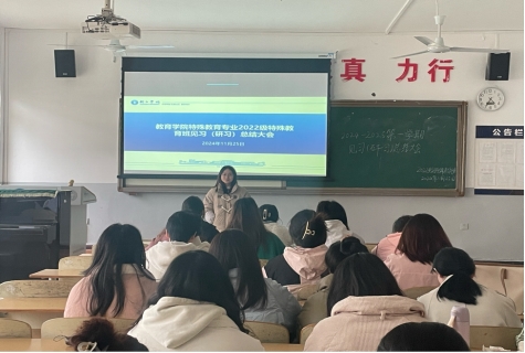 为进一步提高特殊教育专业学生的职业技能,根据《特殊教育专业人才培养方案》要求,近日,教育学院2022级、2023级特殊教育班,分别在明理楼B306、明理楼B410开展特殊教育专业见习(研习)总结大会,由各班学委负责组织此次活动。