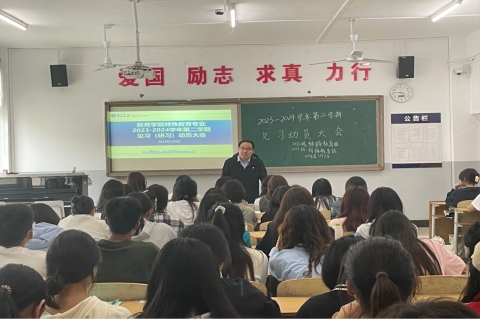 为了使学生更好地了解见习任务,提高师范生的教学能力、实践能力和综合素养,2024年5月8日下午,我院特殊教育专业在明理楼B306召开了2022级和2023级的见习动员大会。参加本次会议的有特殊教育系主任刘方林博士,特殊教育系教研室主任黄守盼博士、宋健博士、宋安宁老师以及2022级和2023级特殊教育专业全体学生,本次会议由黄守盼老师主持。