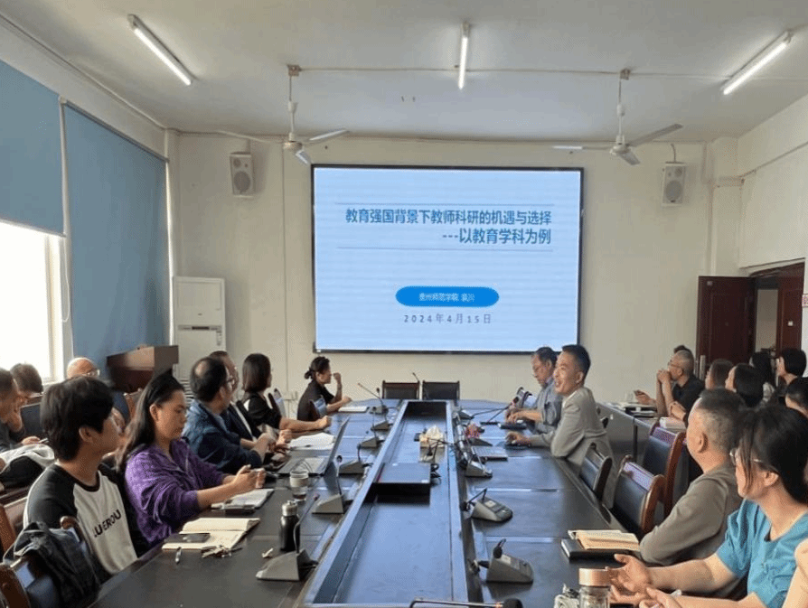 2024年4月15日,为提升我院教师科研能力和科研项目申报立项率,贵州师范学院袁川教授受邀作题为《教育强国背景下教师科研的机遇与选择——以教育学科为例》专题讲座。讲座由教育学院副院长董世华教授主持,教育学院全体教师参加。