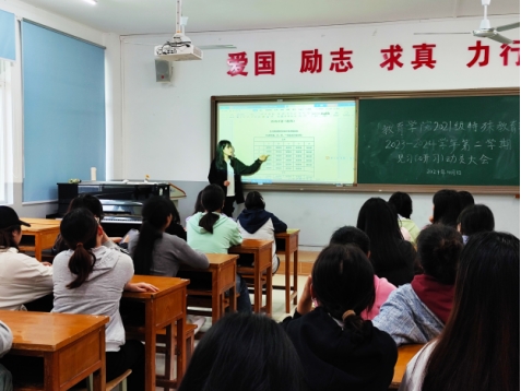 为提高师范生的专业素养与实践能力,2024年4月1日,我院在明理楼B408召开了见习动员大会,本次参会的有2021级特殊教育专业全体学生,本次会议由教育学院特殊教育系教研室主任黄守盼博士主持。