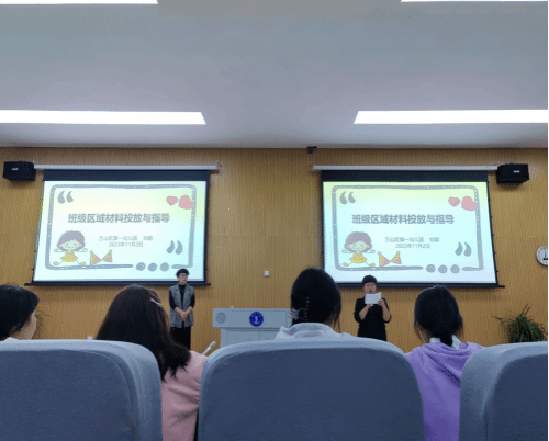 刘娟园长首先介绍了区域环境创设的原则和区域活动中规则的创建。她指出,环境创设和规则创建要适合幼儿身心发展的特点和规律,根据不同年龄特征,投放不同的材料和制定不同的规则。此外,她重点强调了安全性原则,在进行环境创设时要充分考虑安全隐患,保证幼儿身心安全。